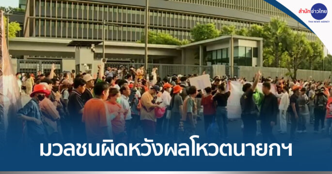 มวลชนที่มาให้กำลังใจ “พิธา ลิ้มเจริญรัตน์” แคนดิเดตนายกรัฐมนตรี พรรคก้าวไกล ที่ศูนย์ราชการเกียกกาย ผิดหวังผลโหวตนายกฯ ประกาศนัดรวมตัวชุมนุมทุกวัน