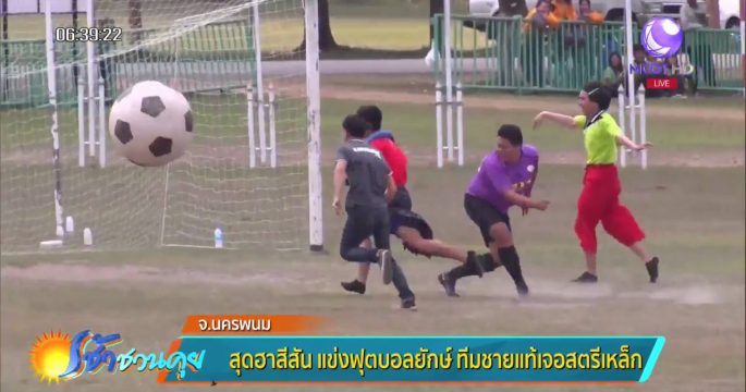 สุดฮา! ม.นครพนม จัดแข่งฟุตบอลยักษ์ ทีมชายแท้ VS ทีมสตรีเหล็ก