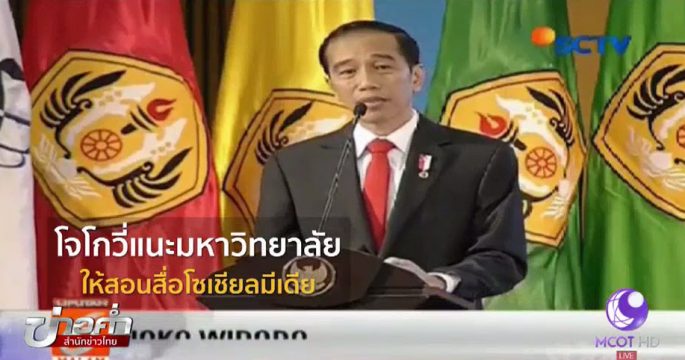 ประนาธิบดีโจโก วิโดโด แนะบรรดามหาวิทยาลัย ให้ก้าวทันยุคสมัยในโลกยุคดิจิทัล อย่าสอนแต่วิชาหลักอย่างเดียว แต่ควรสอนวิชาสื่อสังคมออนไลน์ด้วย ติดตามจากรายงาน