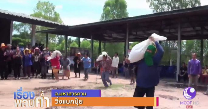 ชาวบ้านอำเภอนาดูน จ.มหาสารคาม จัดกิจกรรมวิ่งเปี้ยวแบกปุ๋ย เพื่อคลายเครียดให้กับชาวบ้านที่มาร่วมในโครงการกลุ่มผลิตปุ๋ยอินทรีย์ เพื่อการพัฒนาการเกษตรอย่างยั่งยืน