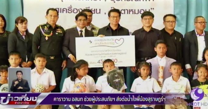 โครงการ “อสมท ช่วยผู้ประสบภัย…สานใจประชารัฐ” เช้านี้ ตระเวนส่งมอบสิ่งของทุนการศึกษา เปิดครัวปรุงสุกต่อเนื่อง ส่งต่อกำลังใจสู่พี่น้องชาวสุราษฎร์ธานี
