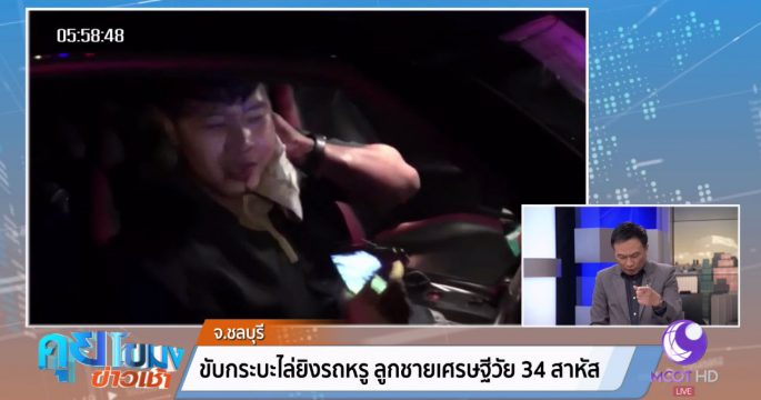 ลูกชายเศรษฐีเจ้าของสวนทัศนา ขับรถเก๋งสปอร์ตบนมอเตอร์เวย์ เจอกระบะท้าแข่ง เอาปืนไล่ยิง 3 นัด กระสุนเข้าท้ายทอยตุงแก้มเจ็บสาหัส