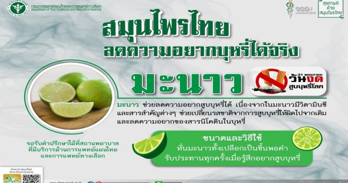 หมอแนะผู้สูบบุหรี่ใช้ชาหญ้าดอกขาว หรือเคี้ยวมะนาว ช่วยลดความอยากบุหรี่ได้ เหมาะสำหรับผู้ตั้งใจเลิกบุหรี่อย่างแท้จริง