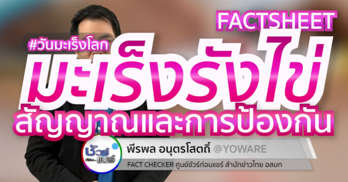 ชัวร์ก่อนแชร์ FACTSHEET : สัญญาณและการป้องกันมะเร็งรังไข่