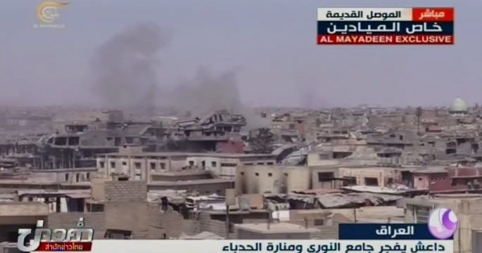 กองทัพอิรักเข้ายึดมัสยิดในเมืองโมซุล ทางตอนเหนือของประเทศที่กลุ่มไอเอสประกาศตั้งรัฐกาหลิบเมื่อ 3 ปีก่อนได้แล้ว พร้อมกับประกาศว่า รัฐจอมปลอมล่มสลายแล้ว