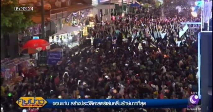 บรรยากาศส่งท้ายเทศกาลที่ถนนข้าวเหนียว เทศบาลนครขอนแก่น มีประชาชนเดินทางมาร่วมเล่นสงกรานต์ และเพื่อเล่นคลื่นมนุษย์ สาดโลด สาดเหลือแน้เด้อ วันสุดท้ายของการจัดงาน มากเป็นประวัติการณ์