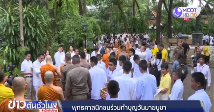กรมการศาสนาจัดพิธีเจริญพระพุทธมนต์ ตักบาตร และเวียนเทียนขึ้นที่วัดปทุมวนาราม เนื่องในเทศกาลวันมาฆบูชา