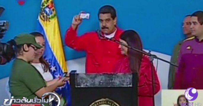 ประธานาธิบดีนิโกลาส มาดูโร ของเวเนซุเอลา เสียหน้าอย่างหนักกลางรายการถ่ายทอดสด หลังพยายามโชว์บัตรประชาชนที่ใช้ในการเลือกตั้งสมาชิกสภาร่างรัฐธรรมนูญ