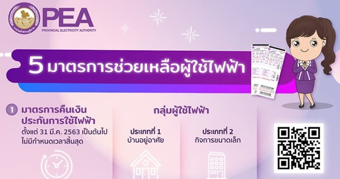 การไฟฟ้าส่วนภูมิภาค (PEA) ออกมาตรการช่วยเหลือผู้ใช้ไฟฟ้าเพื่อบรรเทาความเดือดร้อนจากการระบาดของเชื้อไวรัส COVID-19