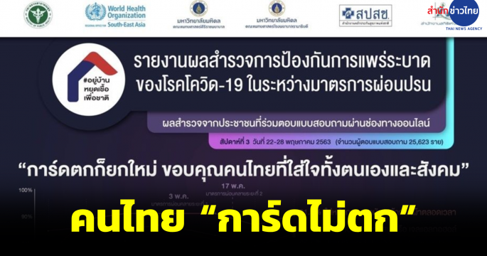 ผลสำรวจมาตรการป้องกันตัวจากโควิด-19 ของประชาชนปลายเดือน พ.ค.พบว่าทำได้ดีขึ้นอย่างมีนัยสำคัญทางสถิติจากเดิมที่เริ่มการ์ดตกในช่วงก่อนหน้านี้