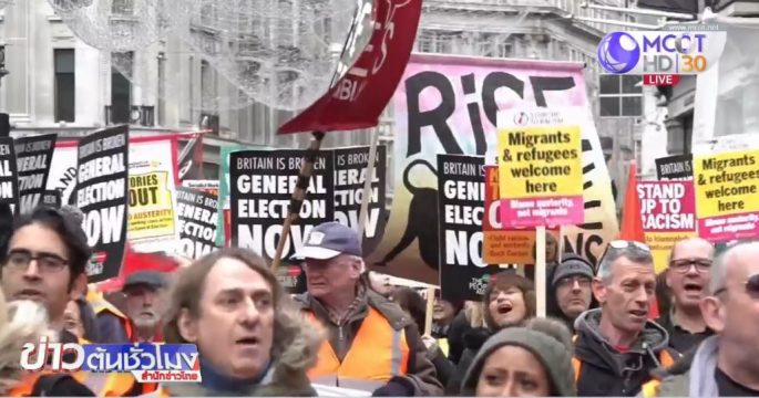 ชาวอังกฤษหลายพันคนเดินขบวนไปตามท้องถนนในกรุงลอนดอน เพื่อต่อต้านมาตรการรัดเข็มขัดของรัฐบาล ซึ่งกำลังส่งผลกระทบต่อคนยากจน