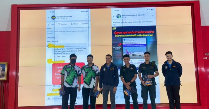 21 ก.ค.- บก.สอท.4 เผยผลการปฏิบัติงานโครงการ Cyber C.A.T ป้องกันภัยมิจฉาชีพออนไลน์แก่นักเรียน บก.สอท.4 เผยผลการปฏิบัติงานตามนโยบายของ พลตำรวจโท ไตรรงค์ ผิวพรรณ ผู้บัญชาการตำรวจสืบสวนสอบสวนอาชญากรรมทางเทคโนโลยี (ผบช.สอท.) ในการส่งเสริมให้ นักเรียน นักศึกษาและเยาวชน มีภูมิคุ้มกันต่อภัยคุกคามในโลกออนไลน์ ภายใต้ โครงการ Cyber C.A.T (Cyber Children Assistant Team) และ แคมเปญ รีบโอนโจรยิ้ม พล.ต.ต.กฤตัชญ์ บำรุงรัตนยศ ผ.บ.ก.สอท. 4 มอบหมายให้ พ.ต.อ. นรวัฒน์ คำพิโล รอง ผบก.ฯ, พ.ต.อ.สุบรรณ โชคพิมพา ผกก.1 บกสอท.4, พ.ต.ท.สุวิทยา มาประจักษ์ รอง ผกก.1 บก.สอท.4 พ.ต.ท.จรินทร์ วิริยา สว.(สอบสวน) กก.1 บก.สอท. พร้อมด้วยเจ้าหน้าที่ตำรวจ กก.1 […]