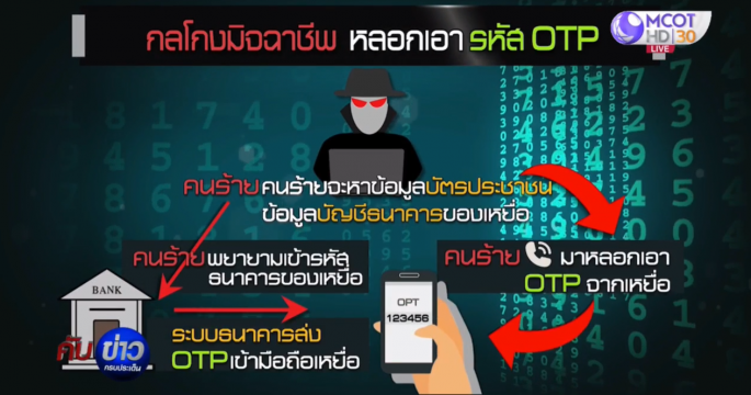 กลายเป็นประเด็นที่เห็นประจำกรณีมิจฉาชีพหลอกล่อเหยื่อให้เปิดเผยตัวเลขระบบการยืนยันตัวตน OTP ก่อนล็อกอินสวมรอยเป็นผู้เสียหาย โอนเงินในบัญชี มีคำถามตามมาว่าระบบนี้มีความปลอดภัยหรือไม่ แล้วรหัส OTP มีความสำคัญอย่างไรถึงเป็นตัวเลขลับที่ห้ามให้ใครล่วงรู้ ติดตามจากรายงาน