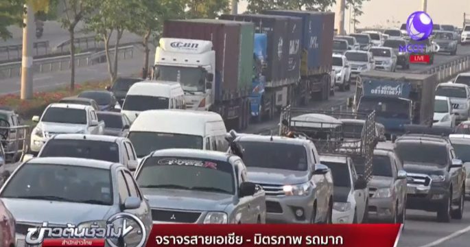การจราจรเช้านี้ ถนนสายเอเชียขาออกจาก กทม. ช่วงผ่าน อ.บางปะอิน จ.พระนครศรีอยุธยา ปริมาณรถเพิ่มมากขึ้นเต็มทุกช่องการจราจร