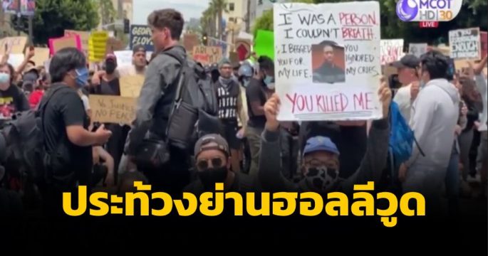 ผู้คนหลายร้อยรวมตัวกันย่านฮอลลีวูด ร่วมประท้วงการตายของ “จอร์จ ฟลอยด์”