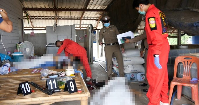 หนุ่มใหญ่แบกลูกซอง 5 นัดบุกยิงภรรยาน้อยและว่าที่ลูกเขยตายคาวงข้าว ลูกสาวบาดเจ็บสาหัส ขณะที่ลูกชายคนเล็กเข้าแย่งปืนยิงพ่อฟุบดับอีกศพ คาดสาเหตุมาจากหนุ่มใหญ่เข้าใจผิด คิดว่าเมียตัวเองมีกิ๊กใหม่