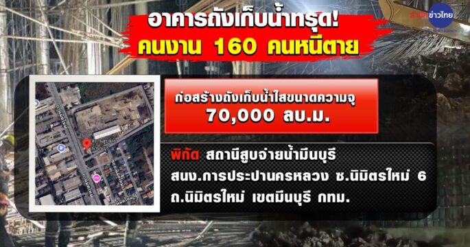 กทม. 7 ก.ค. – เขตมีนบุรี สั่งระงับงานก่อสร้างภายในพื้นที่สถานีสูบจ่ายน้ำมีนบุรี ซอยนิมิตใหม่ 6 จนกว่าเจ้าหน้าที่จะตรวจสอบโครงสร้าง-สาเหตุเหล็กล้มลงแล้วเสร็จ ด้าน กปน. ออกแถลงการณ์ ยืนยันไม่กระทบโครงสร้างอาคาร พร้อมเยียวยาผู้บาดเจ็บ ภาพจากกล้องวงจรปิด เผยนาทีโครงเหล็กภายในไซต์งานก่อสร้างอุโมงค์ส่งน้ำของการประปานครหลวง (กปน.) ค่อยๆ เอนแล้วก็ล้มลงมา ทำให้คนงานที่นั่งทำงานอยู่บนนั้นได้รับบาดเจ็บ เหตุเกิดเมื่อช่วงค่ำวานนี้ (6 ก.ค.) ภายในสถานีสูบจ่ายน้ำมีนบุรี ซอยนิมิตใหม่ 6 เขตมีนบุรี ขณะเกิดเหตุมีคนงานปฏิบัติงานอยู่ 160 คน ออกมาภายนอกได้ทั้งหมด โดยมีผู้ได้รับบาดเจ็บ 12 คน ล่าสุดวันนี้ นายศักดิ์ชัย ใสสุข ผู้อำนวยการเขตมีนบุรี เข้าตรวจสอบพื้นที่ โดยมีเจ้าหน้าที่จากสำนักงานมาตรฐานผลิตภัณฑ์อุตสาหกรรม (สมอ.) สำนักงานประกันสังคม กรมสวัสดิภาพและคุ้มครองแรงงาน ตำรวจพิสูจน์หลักฐาน เข้าตรวจสอบพื้นที่เกิดเหตุใช้เวลาประมาณ 1 ชั่วโมง โดยไม่ได้อนุญาตให้สื่อมวลชนเข้าไปด้านใน ให้อยู่ด้านนอกรั้วเท่านั้น ผู้อำนวยการเขตมีนบุรี ออกมาเปิดเผยว่า โครงการดังกล่าวเป็นโครงการก่อสร้างบ่อเก็บน้ำขนาดใหญ่ เพื่อใช้ในการจ่ายน้ำของสถานีสูบจ่ายน้ำมีนบุรี กปน. โดยมีขนาดกว้าง […]