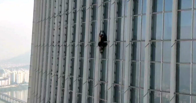 หนุ่มโปแลนด์ห้าวปีนตึกด้วยมือเปล่า