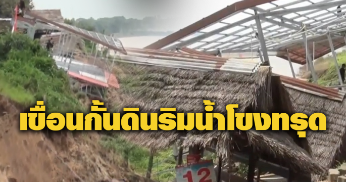 เจ้าหน้าที่มุกดาหารเร่งรื้อถอนโครงสร้างร้านค้าริมฝั่งแม่น้ำโขง หลังเขื่อนกั้นดินทรุดตัวยาวกว่า 200 เมตร