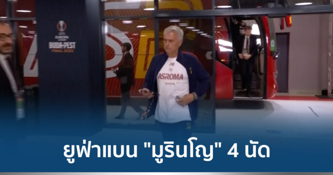 ยูฟ่า สั่งแบน “โชเซ มูรินโญ” กุนซือโรม่า 4 นัดในฟุตบอลยุโรปฤดูกาลหน้า ส่วน “กียาน อซาโมอาห์” อดีตดาวยิงทีมชาติกาน่า ประกาศแขวนสตั๊ดด้วยวัย 37 ปี