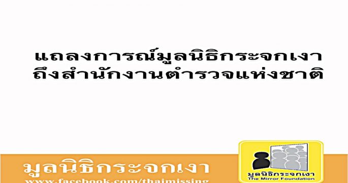 มูลนิธิกระจกเงา ออกแถลงการณ์เรียกร้อง สำนักงานตำรวจแห่งชาติ ยกระดับศูนย์บริหารจัดการคนหาย และประชาสัมพันธ์ย้ำแจ้งความคนหายทำได้ โดยไม่ต้องรอ 24 ชม.