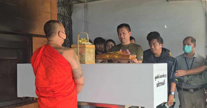 ครอบครัวเตรียมบำเพ็ญกุศลนายสุธรรม เหลืองอร่าม 1 ใน 4 เจ้าหน้าที่มูลนิธิร่วมกตัญญูจุดบ้านหมี่ จ.สระบุรี เสียชีวิตจากอุบัติเหตุซ้ำซ้อน ถูกกระบะพุ่งชนขณะช่วยเหลือผู้บาดเจ็บจากรถจักรยานยนต์ล้ม