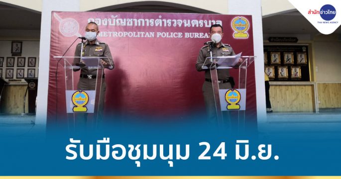 กทม. 21 มิ.ย. – บช.น.แถลงเตรียมความพร้อมดูแลสถานการณ์การชุมนุม 24 มิ.ย. ขอผู้ร่วมชุมนุมงดเว้นจัดกิจกรรมและชุมนุมเพราะผิดตาม พ.ร.ก.ฉุกเฉิน
