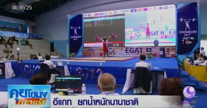 สรัท สุ่นประดิษฐ์ คว้าเหรียญทอง จากรุ่น 94 กิโลกรัมชายในศึกยกน้ำหนักนานาชาติ ที่จังหวัดชลบุรี