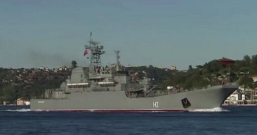 กองทัพอากาศยูเครนกล่าววันนี้ว่า สามารถทำเรือเรือยกพลขึ้นบกลำสำคัญที่ประจำการอยู่ในน่านน้ำของคาบสมุทรไครเมีย หลังจากที่ผู้ว่าการของไครเมียที่รัสเซียเป็นผู้แต่งตั้งกล่าวว่า การโจมตีของยูเครนทำให้เกิดเพลิงไหม้ที่ท่าเรือฟีโอโดเซีย