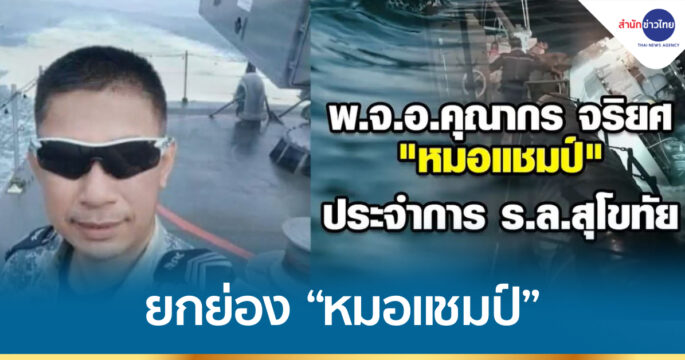 ระดมสรรพกำลังปูพรมค้นหากำลังพลเรือหลวงสุโขทัยที่สูญหาย กองทัพเรือยังยืนยันเสียชีวิต 6 นาย พิสูจน์อัตลักษณ์บุคคลแล้ว 3 นาย ขณะที่เพื่อนๆ พี่ๆ น้องๆ ทหารเรือ ยกย่อง “หมอแชมป์”