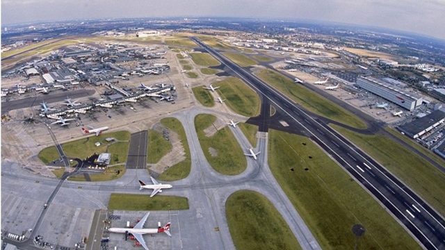 หมอกควันทึบปกคลุมน่านฟ้าบริเวณท่าอากาศยานฮีธโทรวในกรุงลอนดอนของอังกฤษวันนี้ ทำให้ต้องยกเลิกเที่ยวบินราว 100 เที่ยว