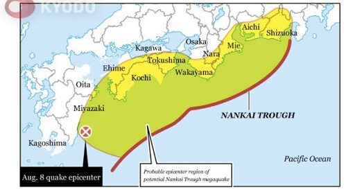 สำนักงานอุตุนิยมวิทยาของญี่ปุ่นเตือนว่า มีความเสี่ยงที่จะเกิดแผ่นดินไหวขนาดรุนแรงระดับ 8 ถึง 9 หลังจากเมื่อวานนี้เกิดแผ่นดินไหวนอกชายฝั่งญี่ปุ่น ซี่งทำให้เกิดความเสียหายเล็กน้อย