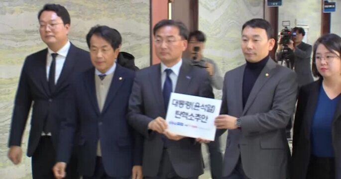 กลุ่มพรรคการเมืองฝ่ายค้าน 6 พรรค ร่วมกันยื่นญัตติในวันนี้ เพื่อให้มีการพิจารณาถอดถอนประธานาธิบดียุน ซอก-ยอล ออกจากตำแหน่ง