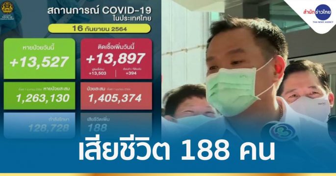 ศบค. รายงานพบผู้ติดเชื้อโควิดเพิ่ม 13,897 คน เสียชีวิต 188 คน ด้าน รมว.สธ. เผยแผนฉีดวัคซีนบูสเตอร์โดส เริ่มได้ 24 ก.ย.นี้