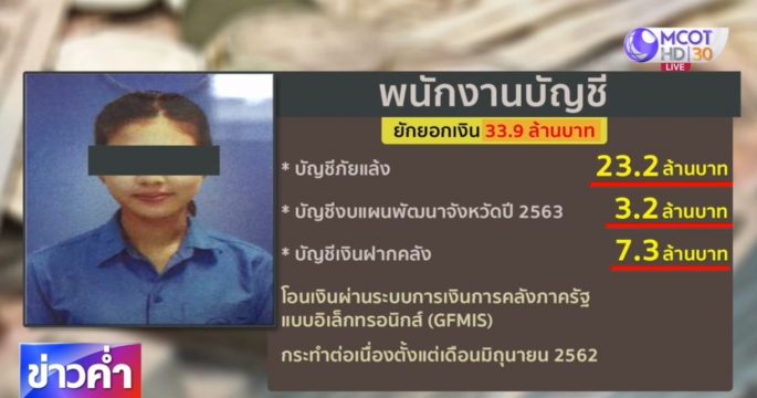 สาวพนักงานวิชาการเงินและบัญชี สำนักงานจังหวัดประจวบคีรีขันธ์ สารภาพปลอมลายมือชื่อผู้มีอำนาจสั่งจ่ายเงิน ยักยอกเงินหลวงไปใช้ส่วนตัว 33 ล้านบาท