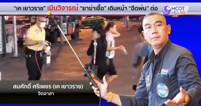 “เค เยาวราช” ขอฉีดพ่นยาฆ่าเชื้อต่อ แม้เขตราชเทวีสั่งห้าม แจงเป็นยาช่วยฆ่าเชื้อโรคในคน 99% ผ่าน อย. แล้ว ขณะที่รองเลขาธิการ อย. เผยไม่ได้ประโยชน์ เพราะเชื้อโควิด-19 อยู่ในสารคัดหลั่ง