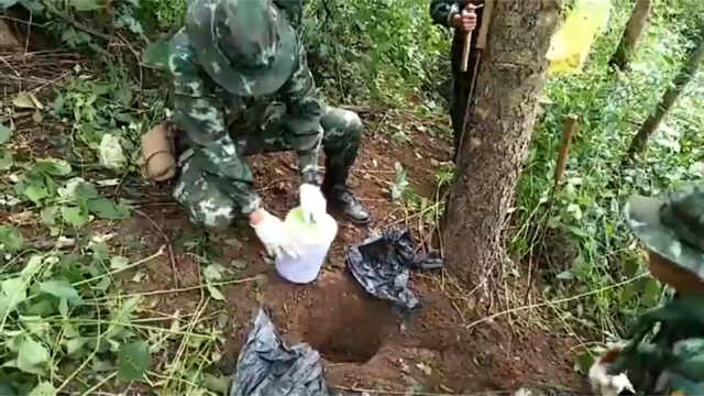 ลำปาง 4 ก.ย.- ไม่รอดตา! ยาบ้าฝังดินบนเขาแจ้ห่ม-ลำปาง ทหารลาดตระเวนพิสูจน์ละเอียดยึดได้ 10,000 เม็ด พ.ท.บุญวัฒน์ จันทรมานนท์ ผู้บังคับกองพันทหารราบที่ 2 กรมทหารราบที่ 17 ในฐานะผู้บังคับการกองบัญชาการ ควบคุมพื้นที่พิเศษ อ.แจ้ห่ม – อ.งาว (บ้านห้วยวาด) ซึ่งเป็นชุดควบคุมพื้นที่พิเศษ นำกำลังเข้าตรวจพิสูจน์บนเขาพิกัด NA-667879 ห่างจากหมู่บ้านห้วยวาด หมู่ 1 ต.ทุ่งผึ้ง อ.แจ้ห่ม ประมาณ 1 กิโลเมตร หลังจากทหารชุดลาดตระเวนพบความผิดปกติของหลุมดินใต้ต้นไม้ใหญ่จำนวน 2 จุด ห่างกัน 10 เมตร การตรวจพิสูจน์พบว่าหลุมดังกล่าวมีกล่องพลาสติกบรรจุยาบ้า 1 มัด จำนวน 6,000 เม็ด และอีกจุด 4,000 เม็ด คาดว่าผู้ลักลอบนำมาฝังพักรอไว้เพื่อส่งต่อให้เครือข่าย ทั้งนี้ ที่ผ่านมากองทัพภาคที่ 3 มีมาตรการคุมเข้มพื้นที่อย่างต่อเนื่อง โดยเฉพาะเขตป่าและบนเขา ทำให้ยาเสพติดไม่สามารถเล็ดรอดได้.-สำนักข่าวไทย