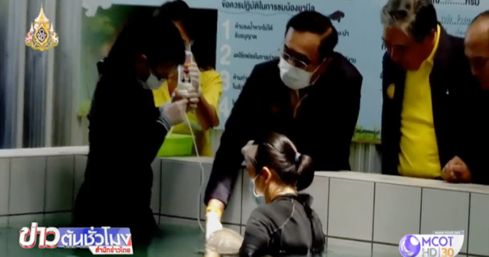นายกรัฐมนตรี นำคณะเยี่ยม “ยามีล” พะยูนน้อยที่ถูกคลื่นซัดเกยตื้น จ.กระบี่ และทีมสัตวแพทย์นำมาอนุบาลไว้ที่ จ.ภูเก็ต