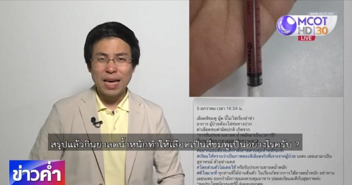 บนสังคมออนไลน์แชร์เตือนกินยาลดน้ำหนักจะทำให้เจาะเลือดออกมาเป็นสีชมพู เรื่องนี้จริงหรือไม่ ติดตามจากศูนย์ชัวร์ก่อนแชร์