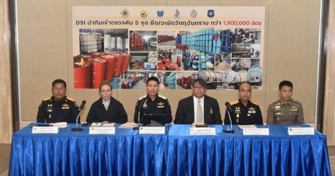 DSI แถลงค้น 5 จุด ยึดสารตั้งต้นผลิตยาเสพติดกว่า 1.8 ล้านลิตร