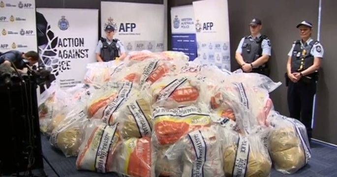 ตำรวจออสเตรเลียกล่าววันนี้ว่า เจ้าหน้าที่สามารถยึดยาไอซ์ได้ล็อตใหญ่ที่สุด คิดเป็นมูลค่าของกลางกว่า 760 ล้านดอลลาร์สหรัฐ (25,000 ล้านบาท)