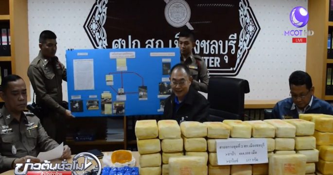 ตำรวจชลบุรีสกัดจับเครือข่ายยาเสพติดรายใหญ่ ยึดของกลางยาบ้ากว่า 4 แสนเม็ด และไอซ์ 317 กรัม