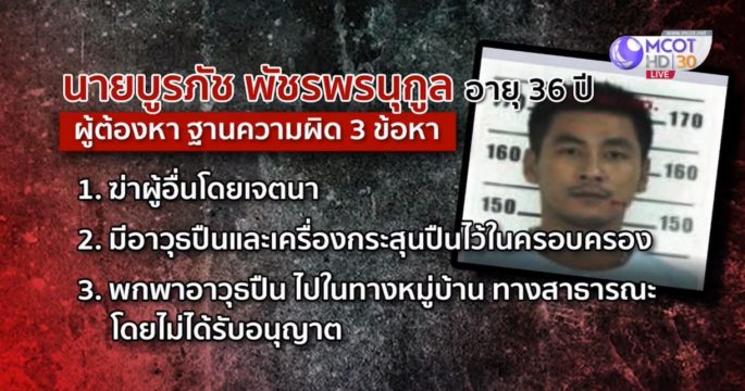 คุมตัวไปทำแผน ชายวัย 41 ปี ใช้ปืนยิงภรรยา พี่สาวภรรยา และแม่ยาย เสียชีวิต อ้างทำไปเพราะหึงหวง ถูกสวมเขา และถูกด่าทอ หลังก่อเหตุยังขี่รถไปรับลูกวัย 8 ขวบด้วย พ่อตาลั่นไม่ให้อภัย และไม่เชื่อว่าลูกสาวคบซ้อน