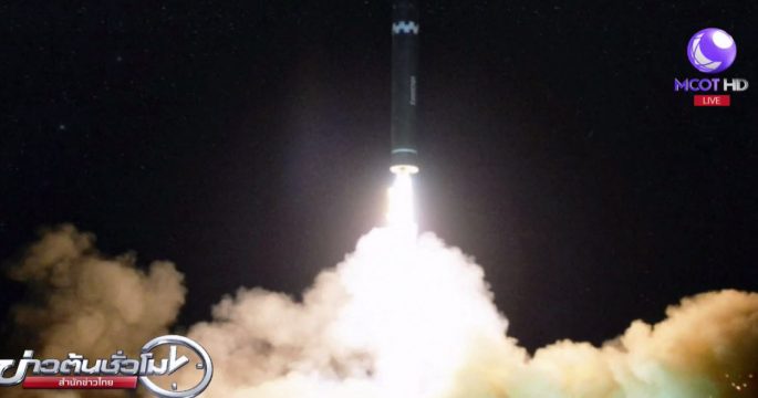 รัฐบาลเกาหลีเหนือเผยภาพการยิงขีปนาวุธข้ามทวีปฮวาซอง 15 ซึ่งมีขีดความสามารถโจมตีพื้นที่ได้ทุกจุดบนแผ่นดินใหญ่ของสหรัฐ