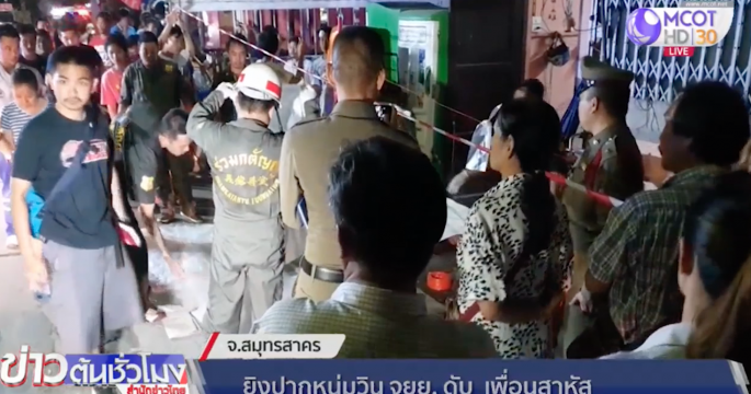 ตำรวจ สภ.กระทุ่มแบน ตรวจสอบคนร้ายใช้ปืนลูกซองยิงวินจยย.ดับ และยิงอีกคนสาหัสในเวลาไล่เลี่ยกัน