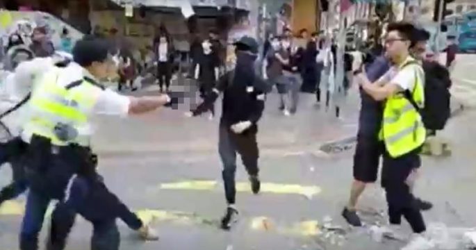 สื่อท้องถิ่นในฮ่องกงแพร่ภาพตำรวจยิงผู้ประท้วง ซึ่งทำให้มีผู้ประท้วงได้รับบาดเจ็บอย่างน้อย 1 คนในเช้าวันนี้