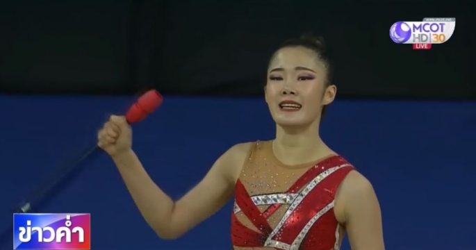 สงขลาเกมส์วันสุดท้าย ยิมนาสติกลีลา ชิง 4 เหรียญทอง ประเภทบอล น้องปิ่น เบญจพร ลิ้มพานิชย์ นักยิมลีลาสาวทีมชาติไทยจากอุบลราชธานี คว้าเหรียญทอง ทำได้ 14.80 คะแนน