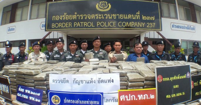 ทหารและตำรวจระดมกำลังกวาดล้างยาเสพติด ล่าสุดยึดกัญชาข้ามชาติได้ โดยคนขับรถฝ่าด่านตรวจหนีไปชนรถพ่วง ก่อนทิ้งกัญชา 500 แท่ง มูลค่า 25 ล้านหลบหนี