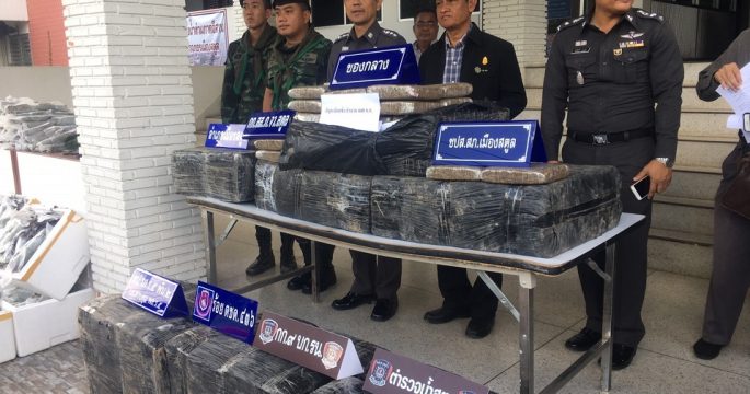 นครพนม 5 มิ.ย.- นครพนมบูรณาการเข้มชายแดนยึดกัญชาล็อตใหญ่ 1,000 กก. ใส่กระสอบซุกริมน้ำโขง เผยช่วงปีนี้ยึดกัญชาได้เกือบ 4 ตัน ยาบ้านับแสนเม็ด ว่าที่ ร.ต ภูมิศักดิ์ ขำปู่ นายอำเภอท่าอุเทน จ.นครพนม ร่วมกับตำรวจ ทหาร และ นรข. แถลงยึดกัญชาล็อตใหญ่ 1,000 กิโลกรัม เนื่องจากสืบทราบว่าจะมีการลักลอบขนส่งกัญชาจากประเทศเพื่อนบ้านเข้ามาในฝั่งไทย จึงเฝ้าระวังพื้นที่อย่างเข้มข้น กระทั่งพบกระสอบใส่กัญชาอัดแท่งจำนวน 25 ใบ ซุกซ่อนอยู่ริมฝั่งแม่น้ำโขง บ้านนาหนองบก หมู่ 4 ต.ไชยบุรี อ.ท่าอุเทน หากกัญชาล็อตนี้เล็ดรอดไปจะมีมูลค่าเพิ่มขึ้น ทั้งนี้ จากสถิติของปี 2560 จังหวัดนครพนมสามารถตรวจยึดของกลางกัญชาได้เกือบ 4,000 กก. และยาบ้า 300,000 เม็ด เทียบกับข้อมูลย้อนหลังเมื่อปี 2558 ยึดกัญชา 5,695 กิโลกรัม ยาบ้า 170,000 เม็ด ปี 2559 […]