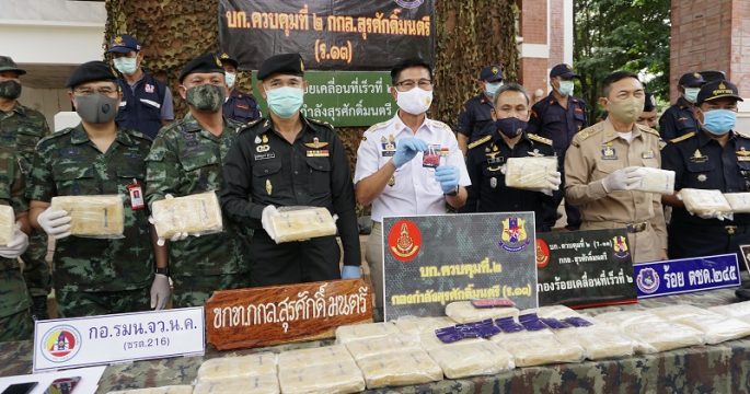 หนองคาย 14 ต.ค.- หนองคายสนธิกำลังปราบยาเสพติดชายแดนโพนพิสัย เพียงวันเดียวยึดของกลางยาบ้าได้ 215,000 เม็ด แม้ผู้ต้องหาหลบหนีได้ แต่รู้เบาะแสแล้วเร่งตามจับ วันนี้ (14 ต.ค.) ที่กองร้อยทหารพรานที่ 2213 หน่วยเฉพาะกิจกรมทหารพรานที่ 21 อ.โพนพิสัย จ.หนองคาย พล.ต.บุญสิน พาดกลาง ผบ.กองกำลังสุรศักดิ์มนตรี แถลงผลการปราบปรามยาเสพติดและสิ่งผิดกฎหมายในพื้นที่ชายแดนว่า ชุดกองร้อยทหารพรานที่ 2213 ได้สนธิกำลังหน่วยงานที่เกี่ยวข้องออกลาดตระเวนดูแลความเรียบร้อยริมฝั่งแม่น้ำโขงบ้านกลุ่มพัฒนา หมู่ 10 ต.กุดบง อ.โพนพิสัย ช่วงเช้าวานนี้ (13 ต.ค.) พบรถจักรยานยนต์ต้องสงสัยบรรทุกกระสอบปุ๋ย จึงเรียกขอตรวจค้น แต่ชายคนขับรีบทิ้งรถหลบหนีไป เจ้าหน้าที่จึงยึดของกลางกระสอบปุ๋ยภายในมียาบ้า 35 ห่อ ประมาณ 210,000 เม็ด ส่วนผู้หลบหนีขณะนี้รู้ตัวแล้วอยู่ระหว่างตามจับกุม ต่อมาเวลา 23.00 น. วันเดียวกัน ได้รับแจ้งว่าจะมีการลักลอบนำยาเสพติดเข้ามาบริเวณป่าช้าบ้านปากสวย ต.วัดหลวง อ.โพนพิสัย จึงสนธิกำลังดักซุ่มพบบุคคลเป้าหมาย แต่เกิดไหวตัวรีบทิ้งถุงหลบหนีไป ซึ่งภายในถุงมียาบ้า 5,000 เม็ด รวมของกลางยึดได้ในวันเดียวกัน […]